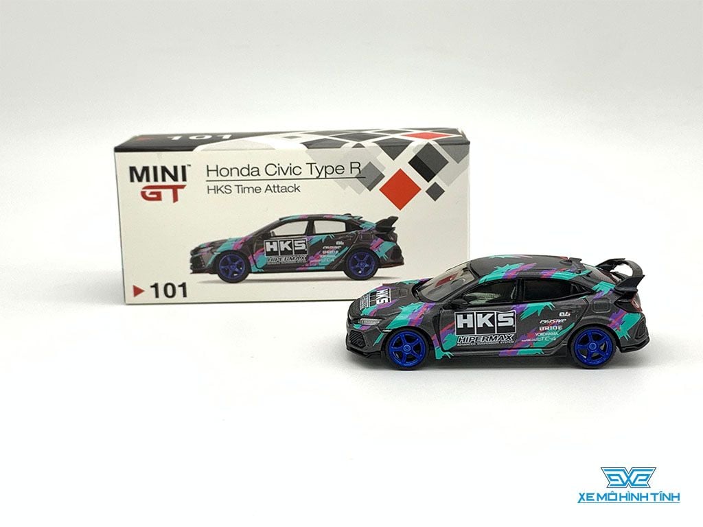 • Xe Mô Hình Honda Civic Type R (Fk8) HKS 2018 Time Attack LHD 1:64 MiniGT ( Đen Xanh )