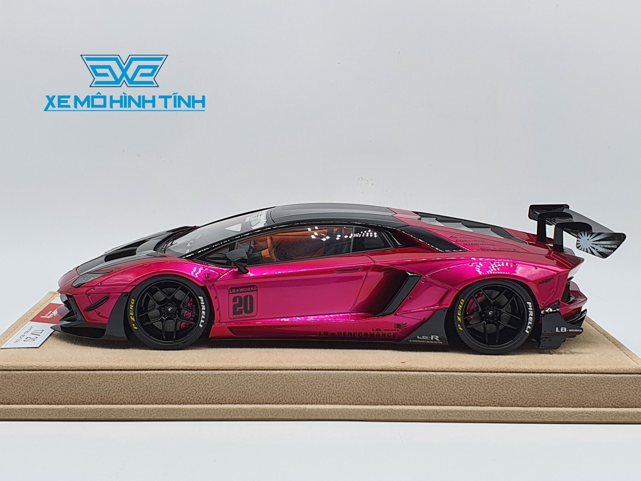 Xe Mô Hình LB Performance Lamborghini Aventador 2.0 Liberty Walk 1:18 ( Hồng Phấn Mui Đen - Đế Da )