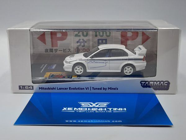 Xe Mô Hình Mitsubishi Lancer Evolution VI Tuned By Mine's 1:64 Tarmac Works ( Trắng )