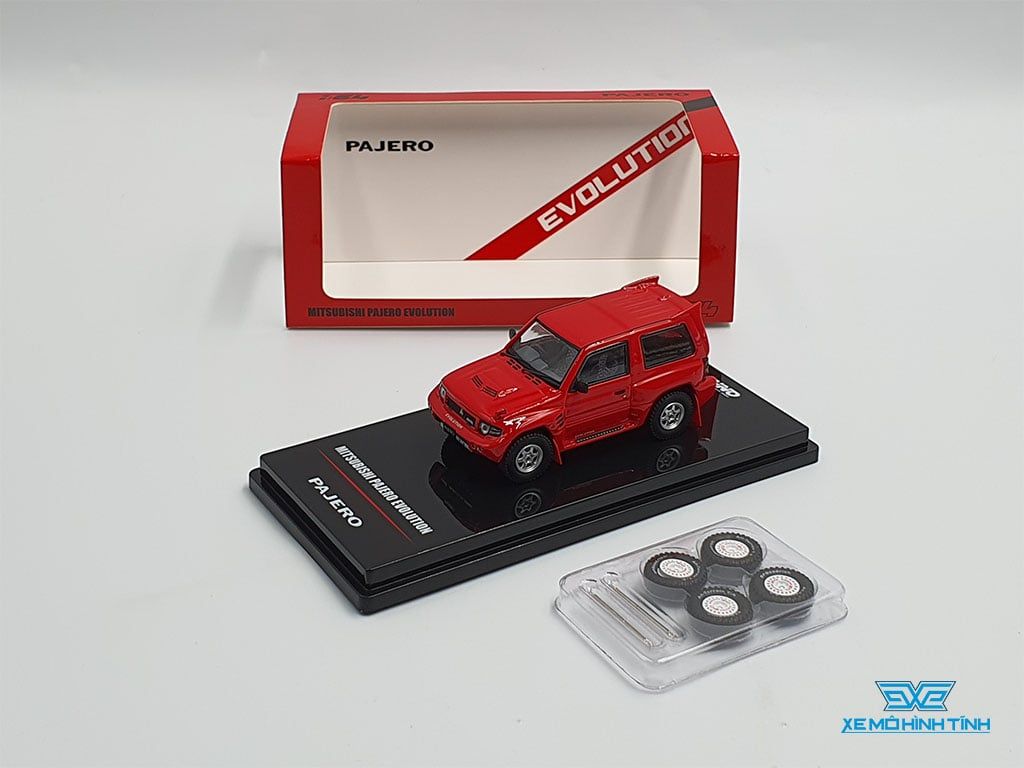 - Tên Sản Phẩm : Xe Mô Hình Mitsubishi Pajero Evolution White With Extra Wheels 1:64 Inno Model (Đỏ)