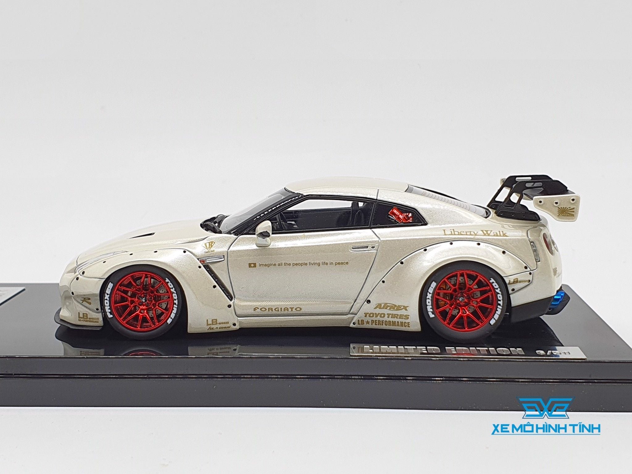 XE MÔ HÌNH NISSAN GTR R35 LB WORKS LIBERTY WALK 1:43 ONE MODEL (PEARL WHITE)