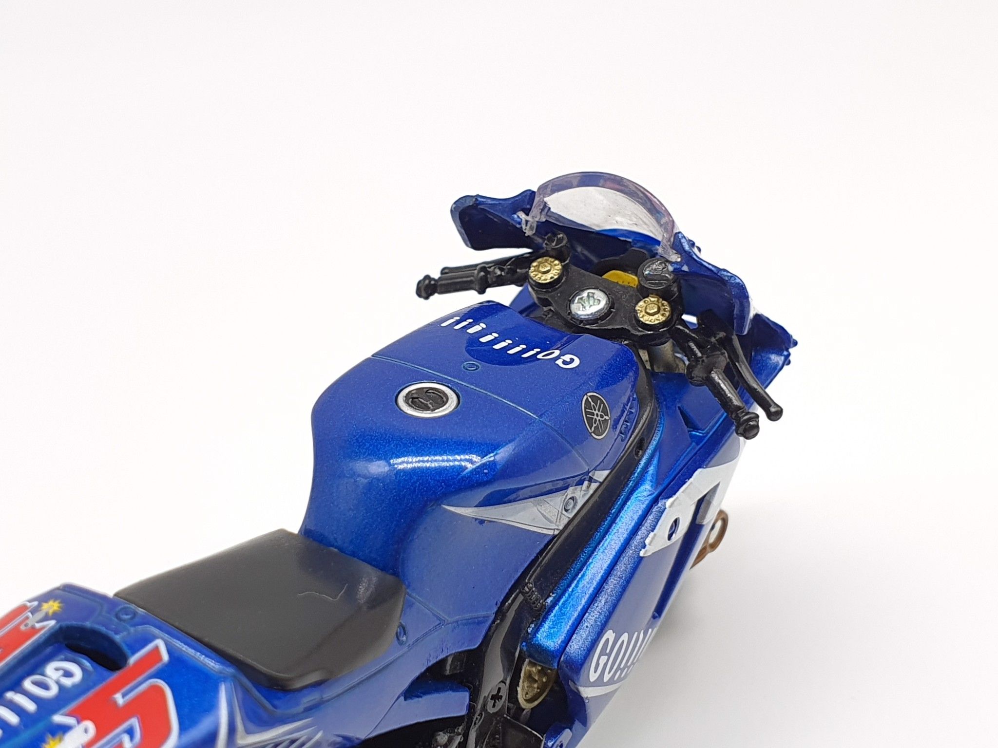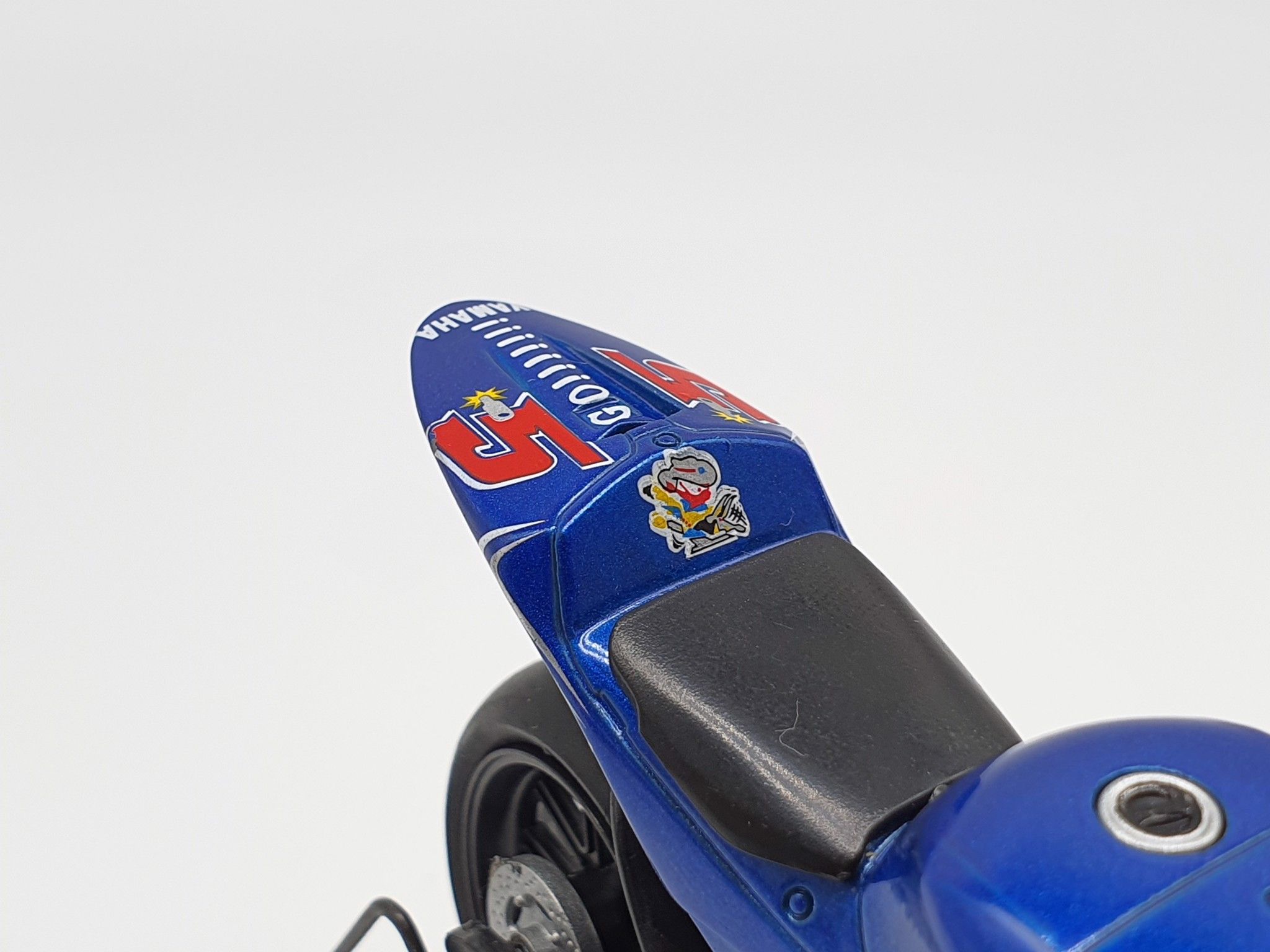 Xe được làm từ nhựa cứng ABS, được sơn lên một lớp sơn màu xanh đặc trưng của Yamaha, xe có thể lăn bánh và nhún được phuộc bánh sau.